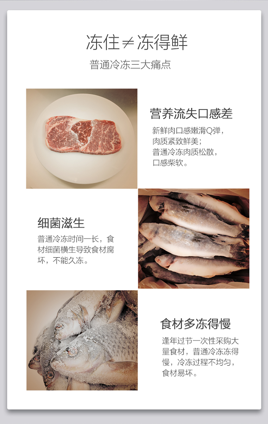 搭載-33℃深凍鎖鮮科技,肉汁飽滿更長久。采用離子長效抗菌凈味,抗菌率高達99.9%。3D沐風,風冷養鮮,無需鑿霜。