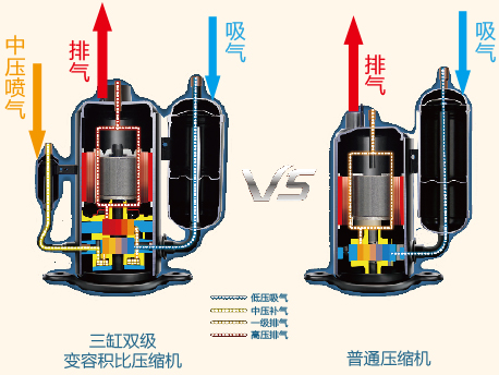 三缸雙級變容壓縮機技術
