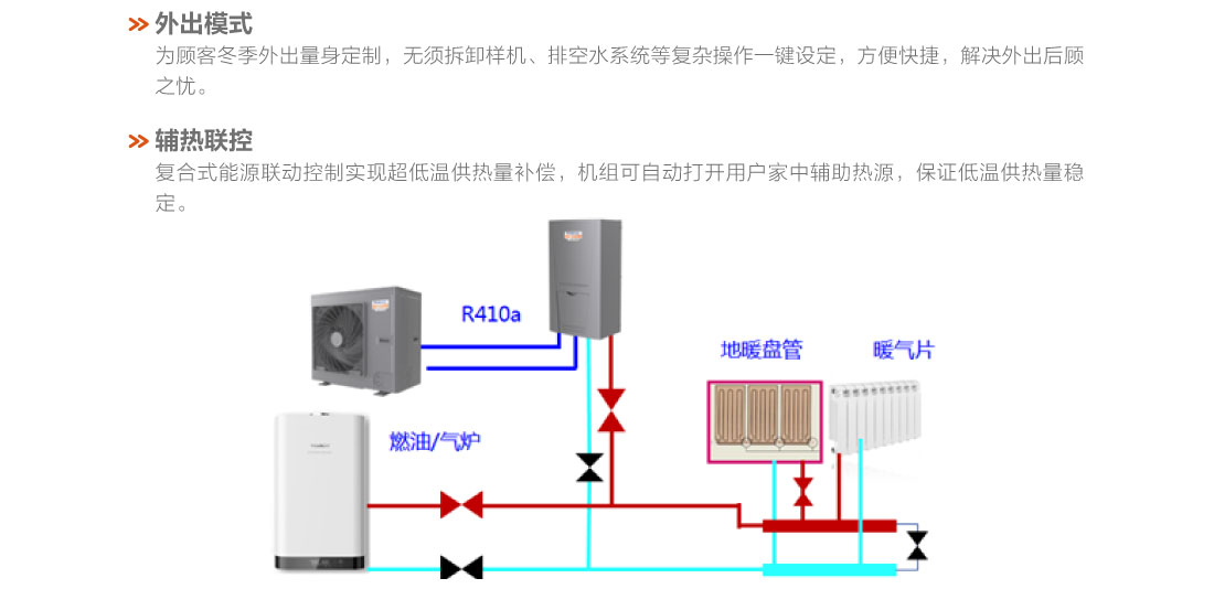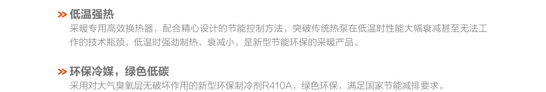 采用直流變頻技術(shù),制熱量范圍8.5~16kW,穩(wěn)定運(yùn)行環(huán)境溫度范圍-20℃~28℃、出水溫度范圍25~55℃,具有低溫強(qiáng)熱、節(jié)能高效、穩(wěn)定可靠等特點(diǎn),適用于集中供暖覆蓋不足的農(nóng)村及城郊地區(qū)以及城市獨(dú)立供暖的公寓、復(fù)式樓、別墅、單元寫字樓、餐廳、商店、娛樂場所等空間.